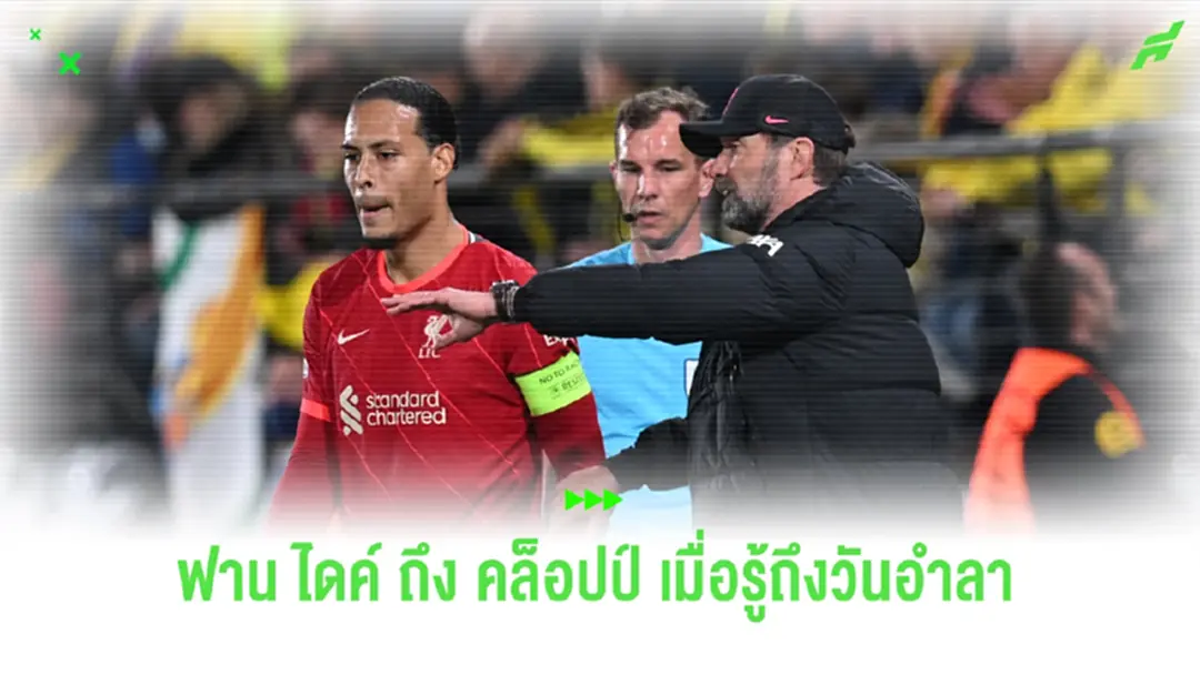 ฟาน ไดค์ ตอบ : “ใช่ บอส ได้แจ้งกับพวกเราเป็นการส่วนตัว นักเตะทุกคนอยู่ด้วยกัน อย่างที่ผมบอกแหละว่า มันยากที่จะทำใจเหลือเกิน แต่ในกรอบความคิดของเรา คือโฟกัสเรื่องการแข่งขัน พวกเรามีเป้าหมายหลายอย่าง ที่ต้องการทำมันให้สำเร็จในปีนี้ ดังนั้นทำไมพวกเราไม่จบฤดูกาลให้มันดีที่สุด และ ร่วมเฉลิมฉลองกับบอสไปด้วยกันล่ะ?”